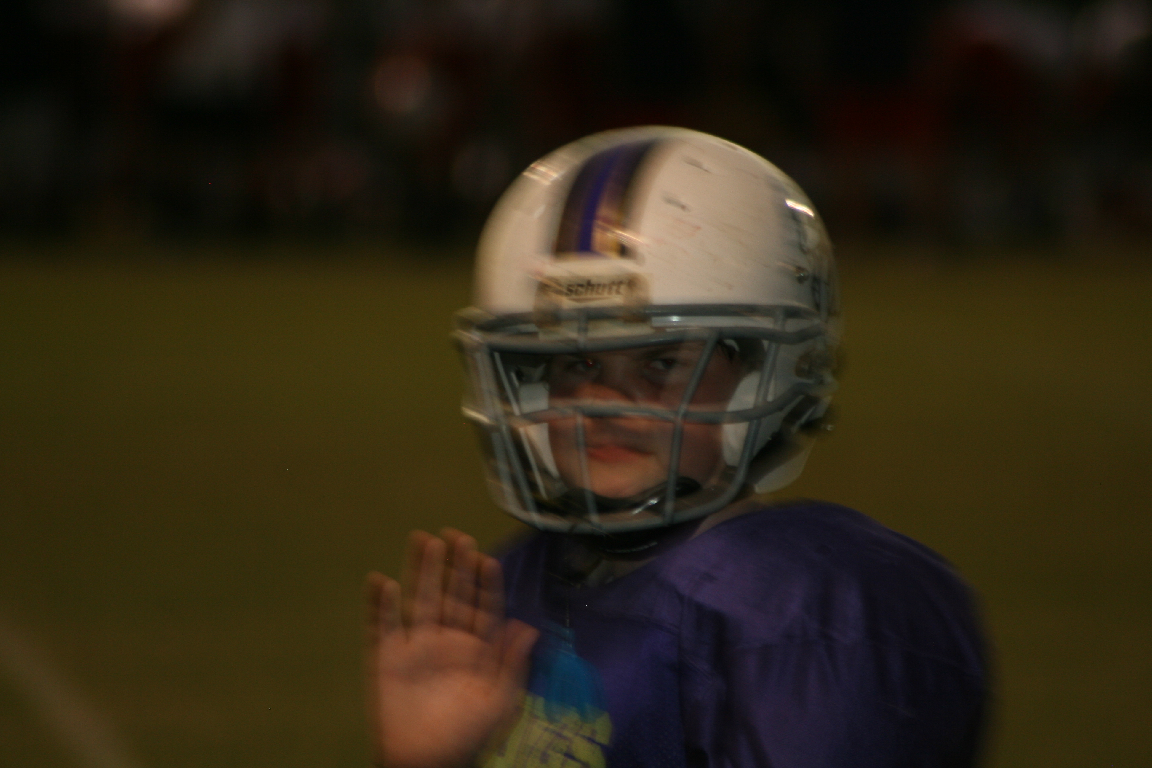 I have to say that when Ethan started asking and then begging to play football I was a bit hesitant. The big boys had played football at his age, kind of. They had signed up, gone to a few practices, told me that ‘football is in my blood’….and then quit. It was so frustrating to have to tell a football coach that called that my son didn’t want to be quarterback. I think the man cried. I didn’t want to go through that again. After about eight months of football talk tho, I finally gave in and signed him up for a local tackly league. Because of his size, he was able to play with the junior high boys even though he was only in sixth grade. He fit right in. It was fun to go to the field sometimes four nights a week and watch my boy run and run and run and eventually get quicker and stronger. I enjoyed ease dropping and talking to the other parents. I especially enjoyed when the weather started to cool off and we had evening games instead of hot noon games.